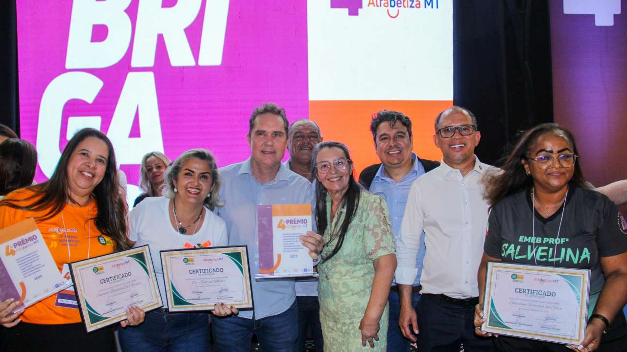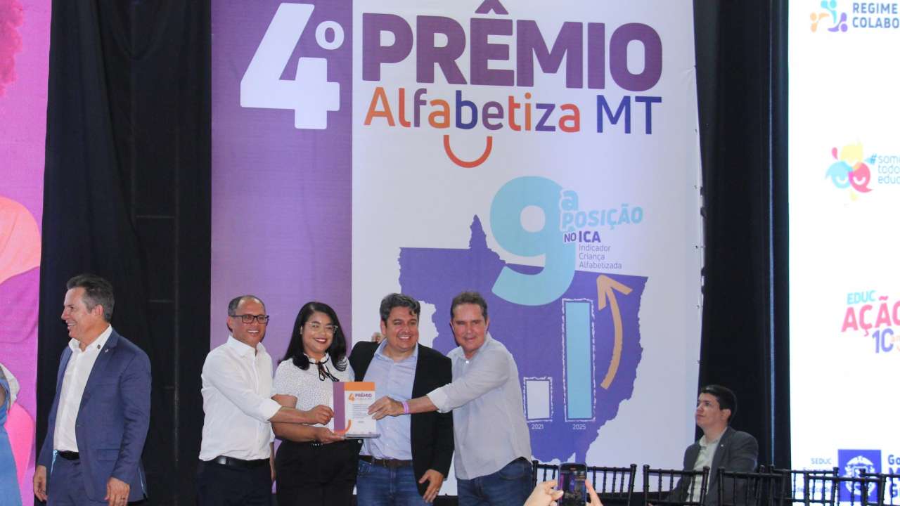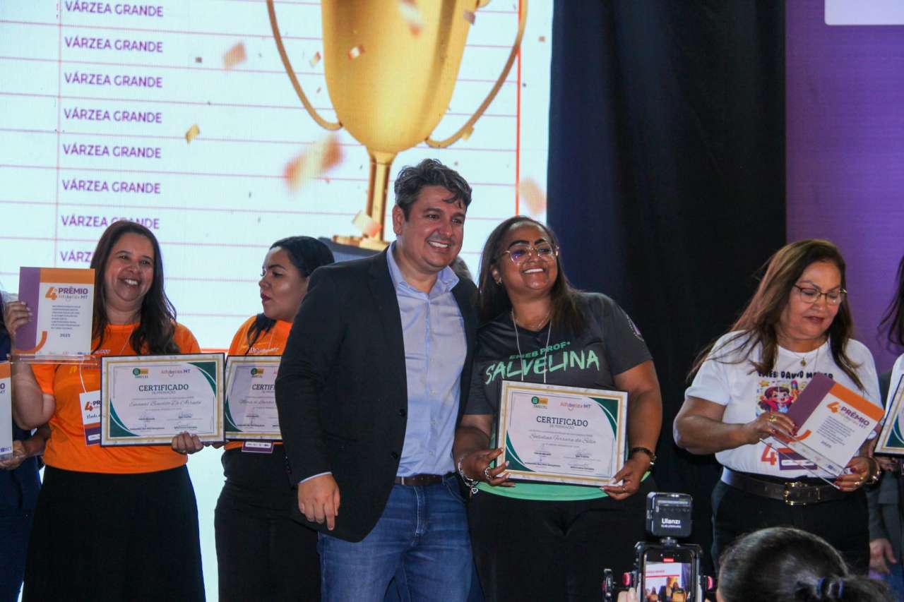 A rede municipal de Várzea Grande teve 12 escolas contempladas com o Prêmio Alfabetiza MT 2025. Além da premiação principal – ‘Escolas Top 10’ – a educação municipal foi vencedora na categoria Desempenho e na de professora que mais se destacou na Alfabetização Com Equidade.