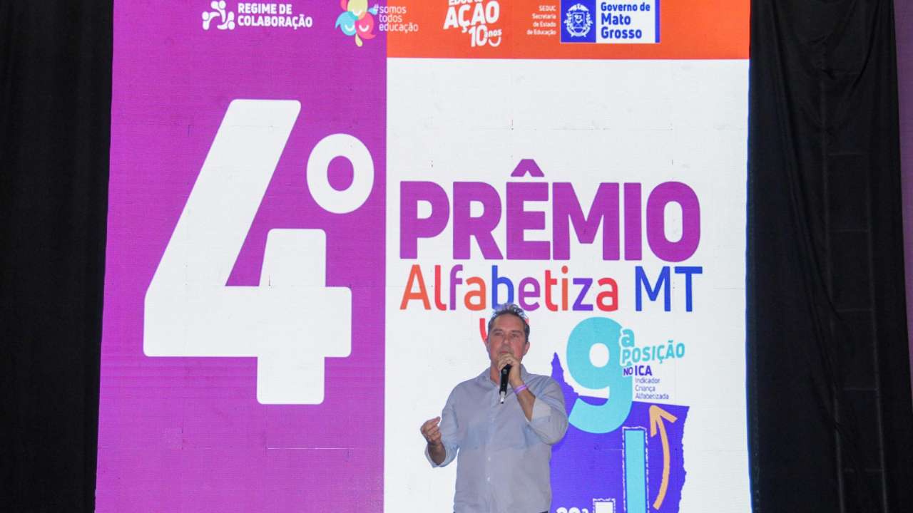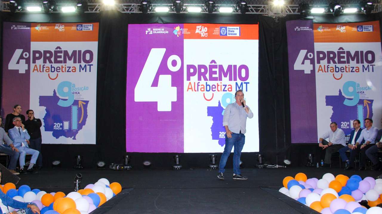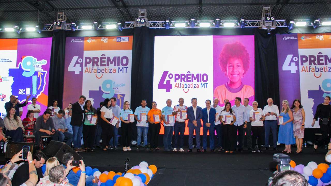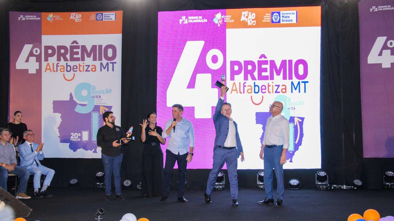 A PREMIAÇÃO – O governador de Mato Grosso, Mauro Mendes (União), destacou o avanço dos indicadores educacionais. “Quando a gente olha o indicador de criança alfabetizada, éramos em 2021, a 22ª posição no Brasil. Agora já subimos como um foguete e estamos na 8ª posição”, afirmou.