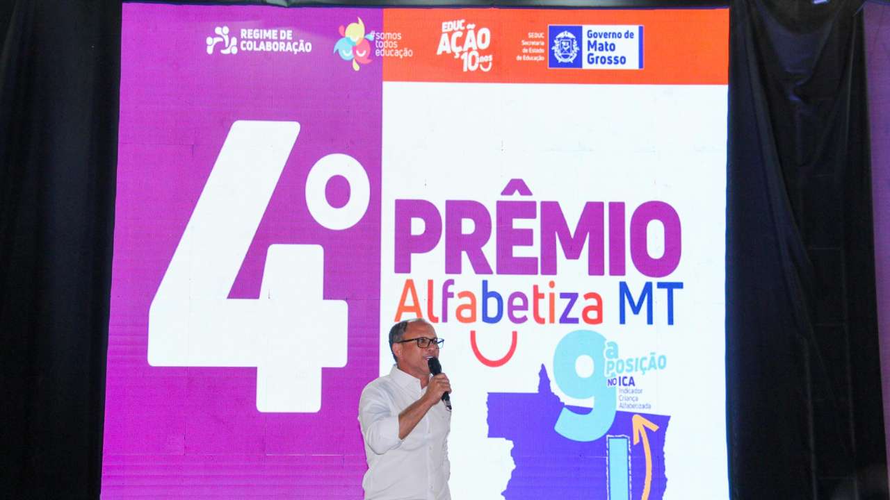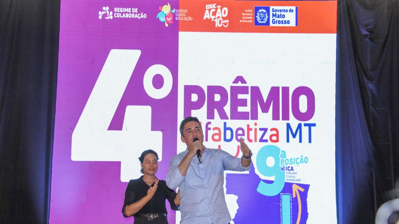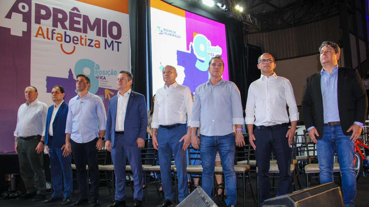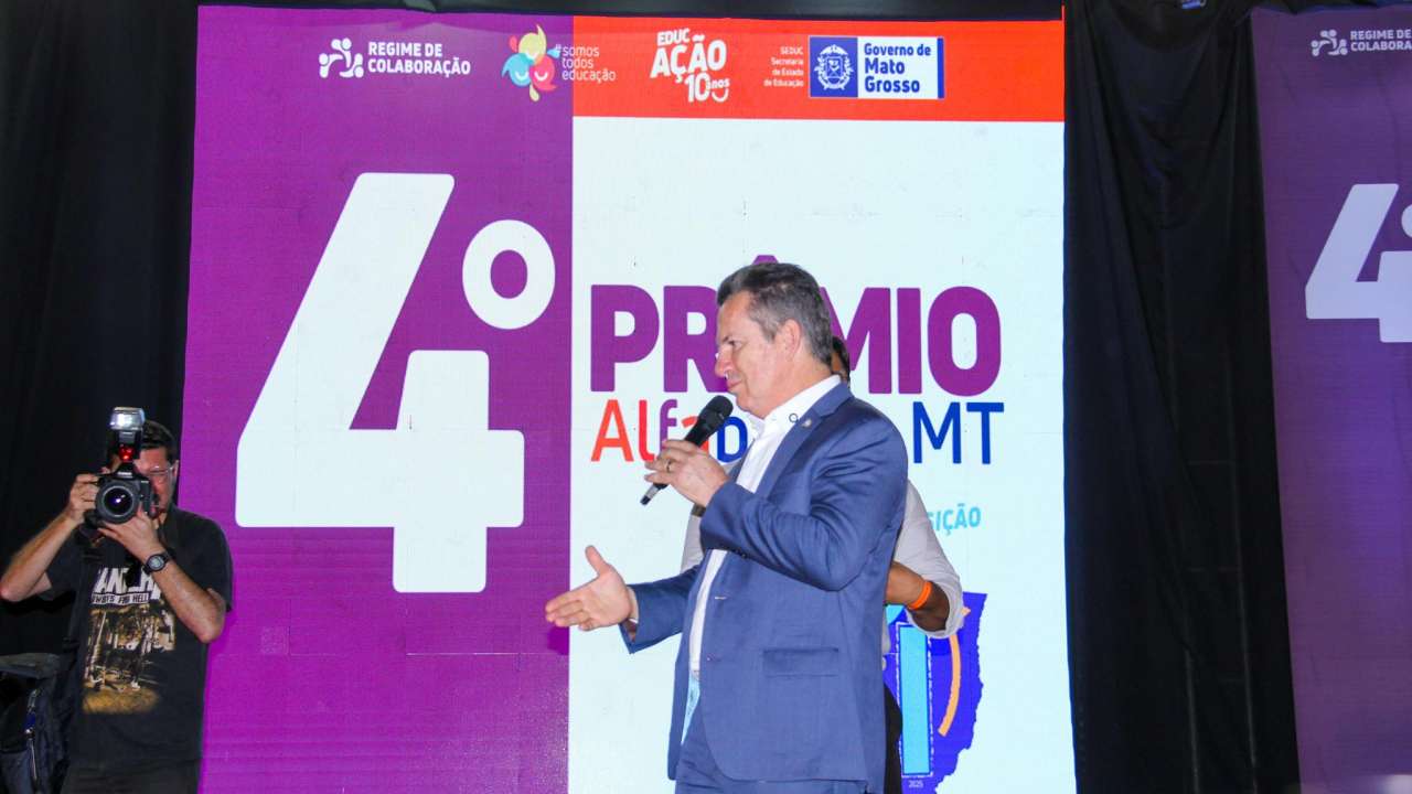 A PREMIAÇÃO – O governador de Mato Grosso, Mauro Mendes (União), destacou o avanço dos indicadores educacionais. “Quando a gente olha o indicador de criança alfabetizada, éramos em 2021, a 22ª posição no Brasil. Agora já subimos como um foguete e estamos na 8ª posição”, afirmou.