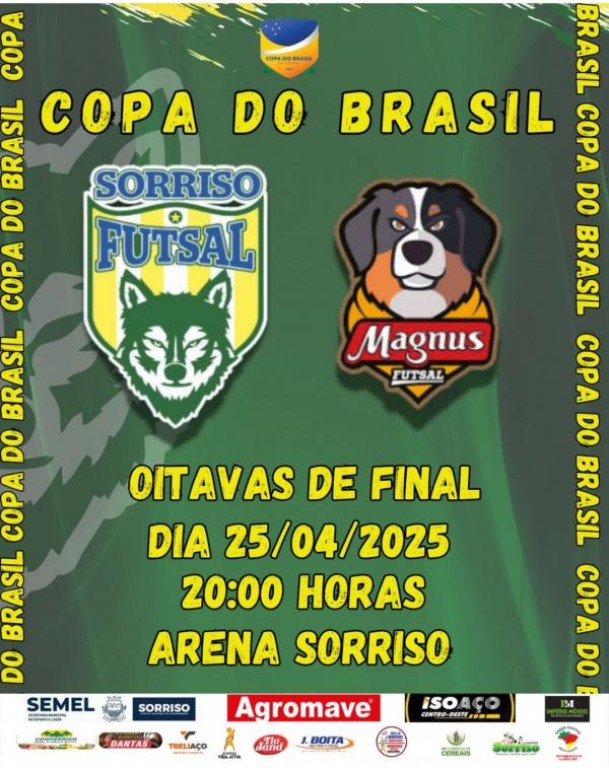 A ASF Sorriso vai encarar o Magnus nas oitavas de final da Copa do Brasil de Futsal 2025. O primeiro jogo será nesta sexta-feira (25), na Arena Sorriso, às 20 horas. De acordo com a Confederação Brasileira de Futsal (CBFS) a partida de volta está prevista para o dia 15 de maio, em Sorocaba (SP).