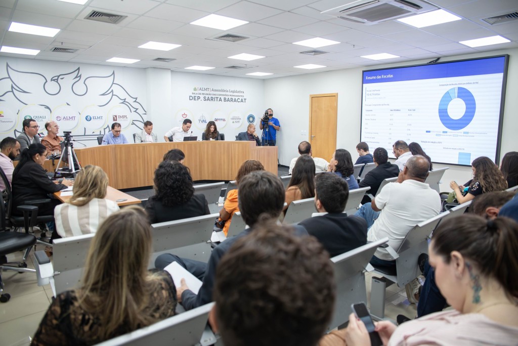 A Comissão de Constituição, Justiça e Redação (CCJR) da Assembleia Legislativa de Mato Grosso realizou, nesta terça-feira (4), a primeira audiência pública para discutir o Projeto de Lei Orçamentária Anual (PLOA 1576/2025). A proposta do governo estadual estima uma receita total de R$ 40,7 bilhões para o exercício de 2026, representando um crescimento de 10,02% em relação a 2025, que é de R$ 37,076 bilhões.