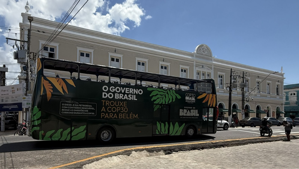 Reforçando o caráter sustentável da ação, os ônibus utilizados no Roteiro Cultural e Turístico da COP30 são abastecidos com Diesel R Petrobras, combustível de fonte renovável que reduz até 70% das emissões de gases de efeito estufa em relação ao diesel mineral. A medida contribui para diminuir a pegada de carbono das atividades da conferência e consolida o compromisso do Governo do Brasil com um turismo de baixo carbono e com a transição energética.