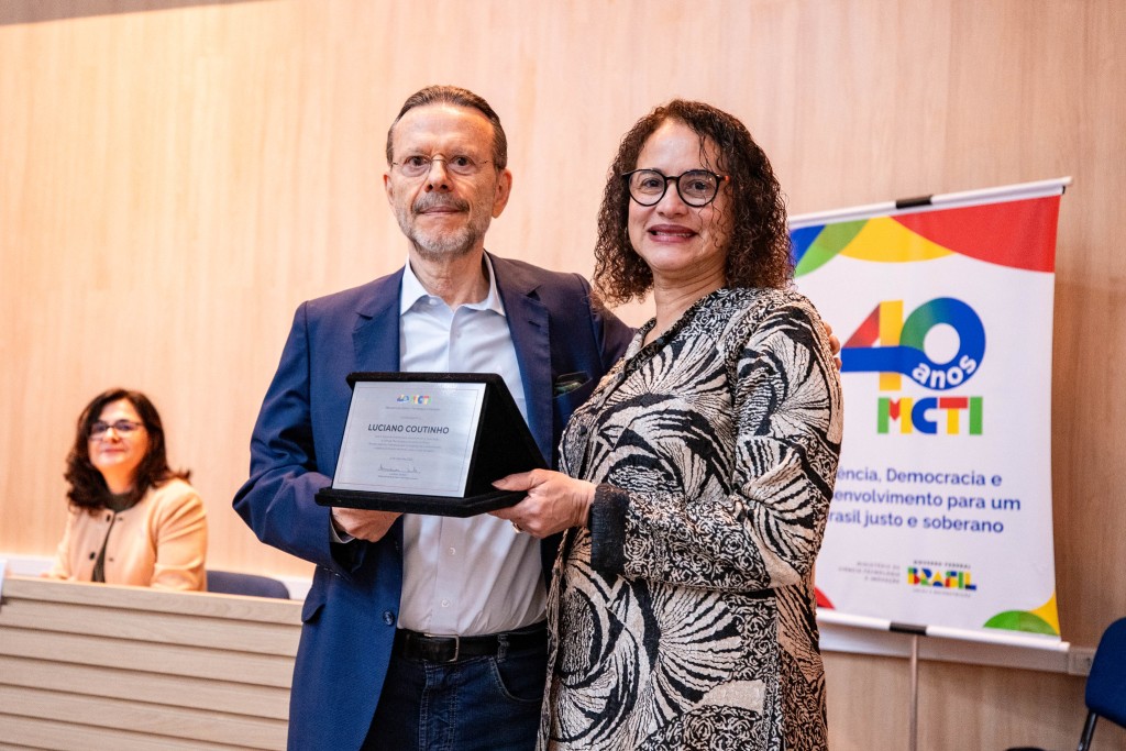 Durante discurso, a chefe da pasta homenageou o primeiro secretário-executivo da pasta, Luciano Coutinho, presente no evento. “Luciano Coutinho construiu uma trajetória que reúne uma sólida contribuição acadêmica e uma atuação prática coerente e competente, como poucos. É alguém que sempre faz diferença por onde passa. É uma alegria que ele integre, hoje, o grupo de trabalho sobre os 40 anos do MCTI”, disse a ministra ao entregar uma placa em reconhecimento ao seu papel no desenvolvimento da ciência e tecnologia no Brasil.