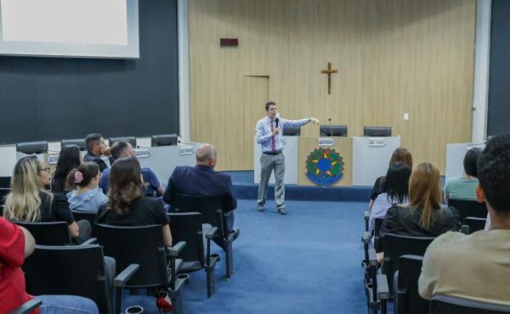 Na manhã desta sexta (25), o cirurgião oncológico Dr. Mário Bernardes ministrou uma palestra a vereadores e servidores da Câmara sobre o câncer de esôfago, abordando fatores de risco, formas de prevenção e os avanços no tratamento da doença. O evento, realizado no plenário, foi sugerido pelo vereador Brendo Braga (Republicanos), autor da lei municipal que institui e inclui no Calendário Oficial de Eventos o Abril Azul Claro, mês de conscientização sobre o câncer de esôfago.