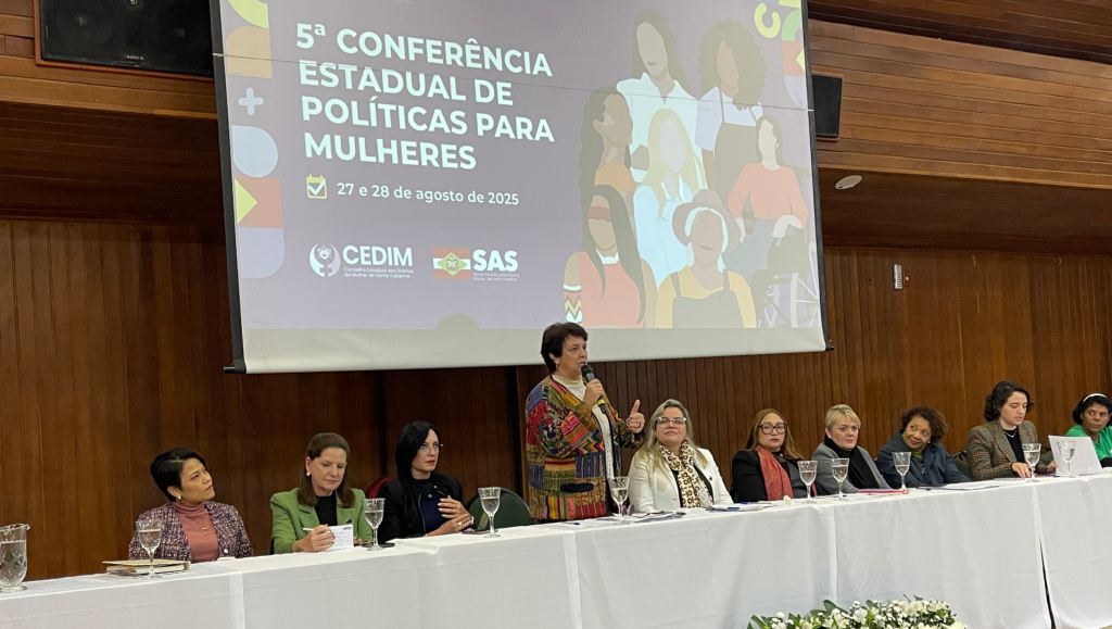 A 5ª Conferência Estadual de Políticas para as Mulheres de Santa Catarina (5ª CEPMSC) foi iniciada nesta quarta-feira (27), em Florianópolis (SC). Com o tema “Mais Democracia, Mais Igualdade, Mais Conquistas para Todas”, o evento reuniu cerca de 300 participantes, entre gestoras públicas, lideranças sociais, conselheiras e cidadãs de todas as regiões do estado. Ao final da conferência, que segue até amanhã (28), serão eleitas as 74 delegadas que representarão Santa Catarina na 5ª Conferência Nacional de Políticas para as Mulheres.
