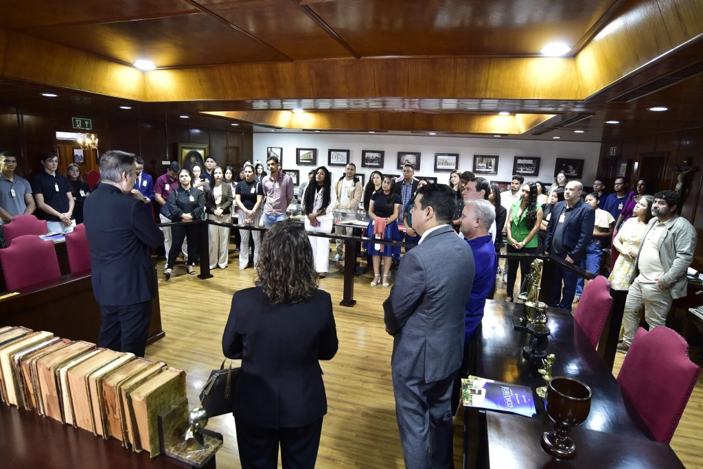 No Espaço Memória, onde o Tribunal de Justiça guarda relíquias que contam a trajetória do Poder Judiciário mato-grossense, os estudantes foram recebidos pelo juiz auxiliar da Presidência, Agamenon Alcântara Moreno Júnior.