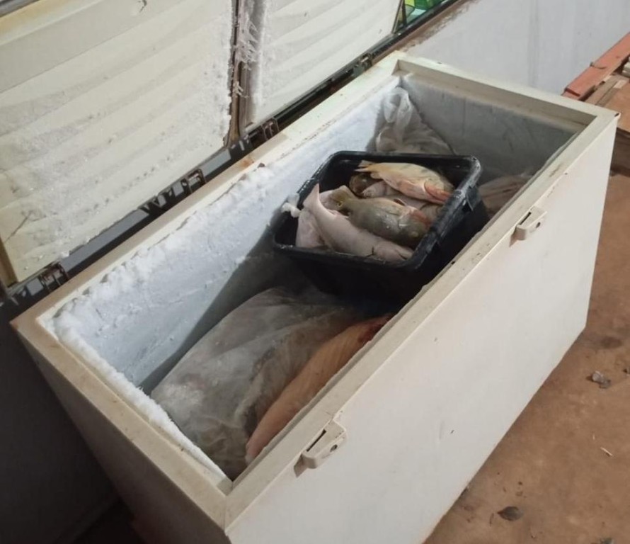 O mandado de busca e apreensão foi cumprido na propriedade do investigado. Logo na chegada ao imóvel, os policiais encontraram duas caixas de isopor contendo peixes congelados, indicando pesca recente. Entre os espécimes apreendidos, estavam exemplares cuja captura é proibida por lei ambiental, como pirarucu, tucunaré e pintado.