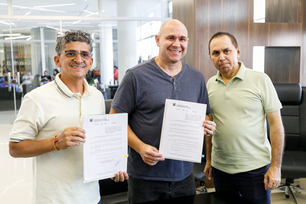 O prefeito de Cuiabá, Abilio Brunini, sancionou na quarta-feira (27), em cerimônia no gabinete do Palácio Alencastro, duas leis de autoria dos vereadores Dilemário Alencar e Cezinha Nascimento. As propostas aprovadas pela Câmara Municipal agora passam a integrar oficialmente as políticas públicas da capital.