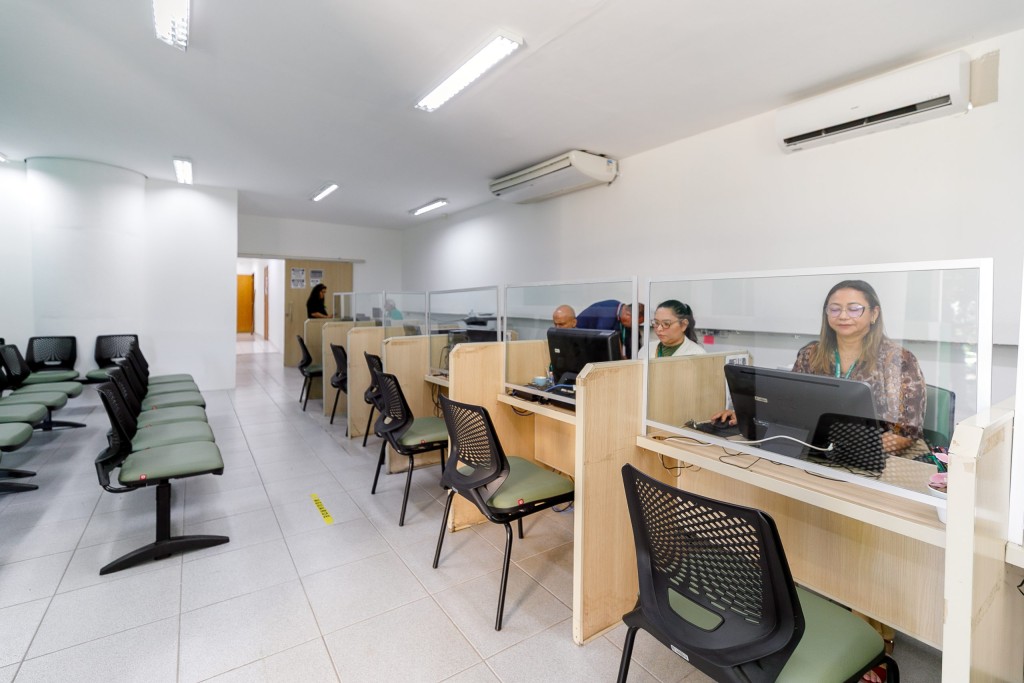 A imagem mostra a recepção da Secretaria Municipal de Habitação e Regularização Fundiária de Cuiabá.