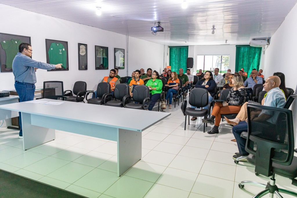 A foto ilustra o momento da palestra ministrada pelo assessor da SORP, Joelton Nascimento, que apresentou os critérios legais para a aplicação de penalidades em casos de queimadas.