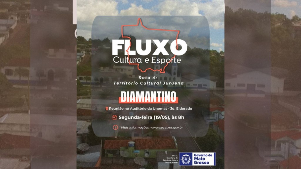 A Prefeitura de Diamantino, por meio da Secretaria Municipal de Cultura e Turismo em parceria com a Secretaria de Estado de Cultura, Esporte e Lazer (SECEL), convida todos os produtores culturais, artistas e agentes envolvidos com a cultura local para participarem de um importante encontro com o Secretário de Estado da Cultura.