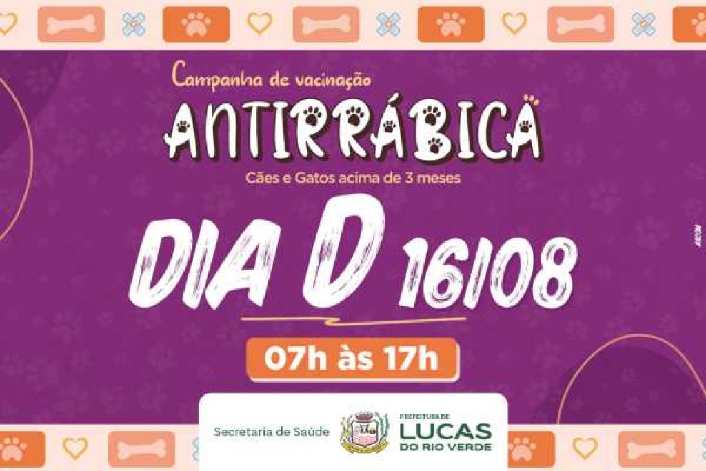 No próximo sábado, 16 de agosto, Lucas do Rio Verde terá um dia inteiro dedicado à proteção dos pets, é o Dia “D” de Vacinação Contra a Raiva. A expectativa do município é imunizar mais de 10 mil cães e gatos.