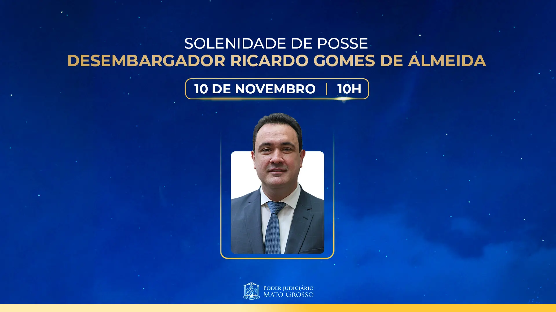 O advogado Ricardo Gomes de Almeida toma posse no cargo de desembargador do Tribunal de Justiça de Mato Grosso (TJMT) em sessão solene nesta segunda-feira (10), a partir das 10 horas, no Plenário Desembargador Wandyr Clait Duarte (Plenário 1), localizado no Palácio da Justiça, em Cuiabá. A cerimônia será aberta ao público e também contará com transmissão ao vivo pelo canal oficial do TJMT no YouTube.