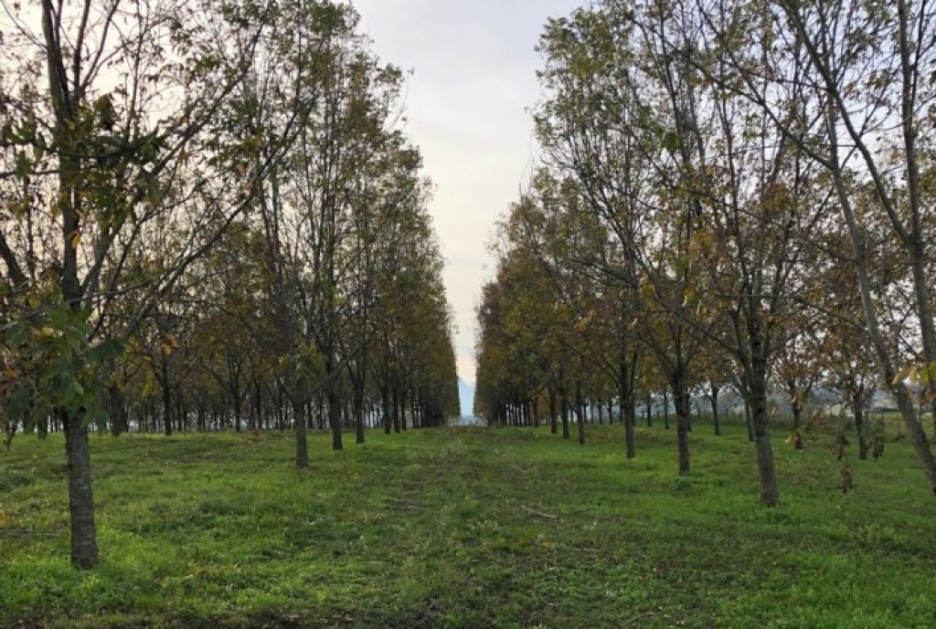 Mauro Carrion destaca que a propriedade totaliza 300 hectares, sendo 32 dedicados exclusivamente à produção de noz-pecã. O pomar foi plantado entre 2008 e 2010, com 75% da área cultivada com a variedade Barton, e conta com sistema de irrigação completo.